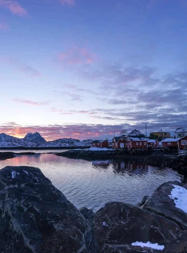 Découvrez les charmants villages de Nusfjord, Reine et de Å i Lofoten où les « rorbuer », maisons de pêcheurs, s’intègrent parfaitement au paysage.